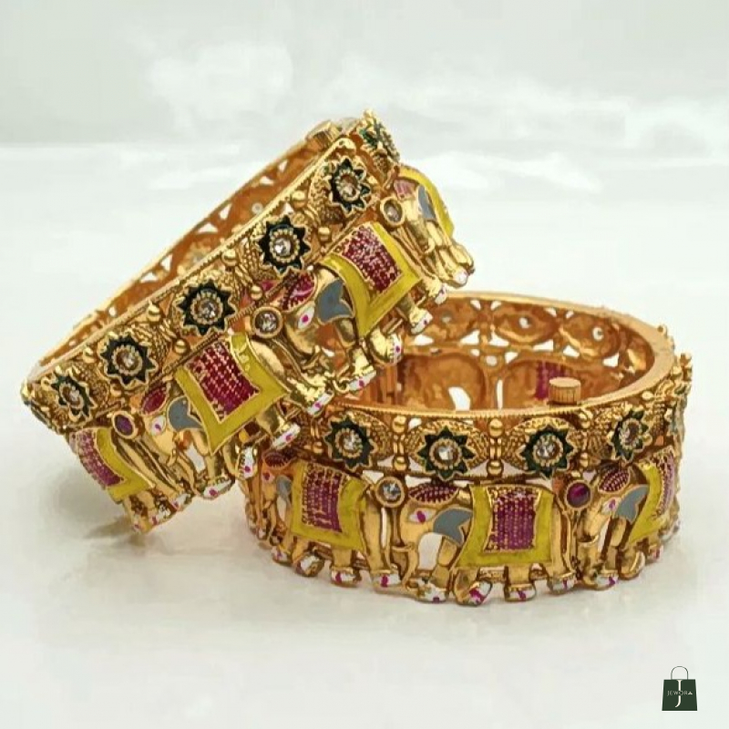 Perfect for traditional south Indian attire , handcrafted bangles with elephant motifs symbolizing prosperity and good fortune.