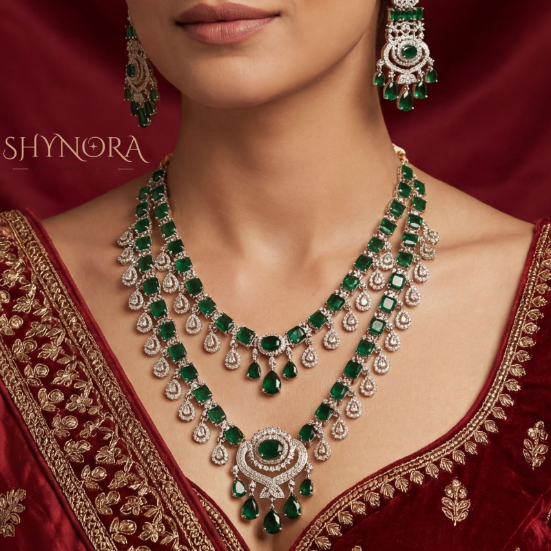 Ideal for weddings, bridal wear, receptions, engagements, festive celebrations, and evening occasions, this emerald green jewelry set pairs beautifully with sarees, lehengas, anarkalis, and designer gowns.