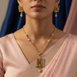 The set includes a statement pendant necklace and matching drop earrings, making it ideal for weddings, festive wear, cultural events, and elegant traditional looks. The design gives a royal heritage feel inspired by vintage Indian jewellery.