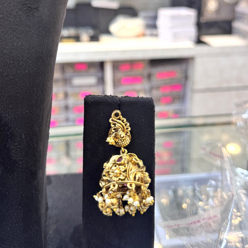 Handcrafted with care, the Royal Lakshmi Temple Haar blends cultural symbolism with luxurious design. Ideal for weddings, festive celebrations, and grand occasions, this set reflects prosperity, tradition, and unmatched craftsmanship. Elevate your bridal look with this majestic temple jewelry set from Jewora.