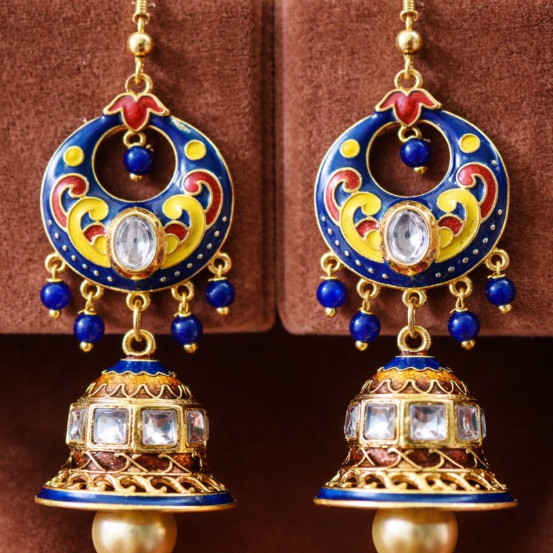 Royal Meenakari Jhumka Earrings with Pearl Drop