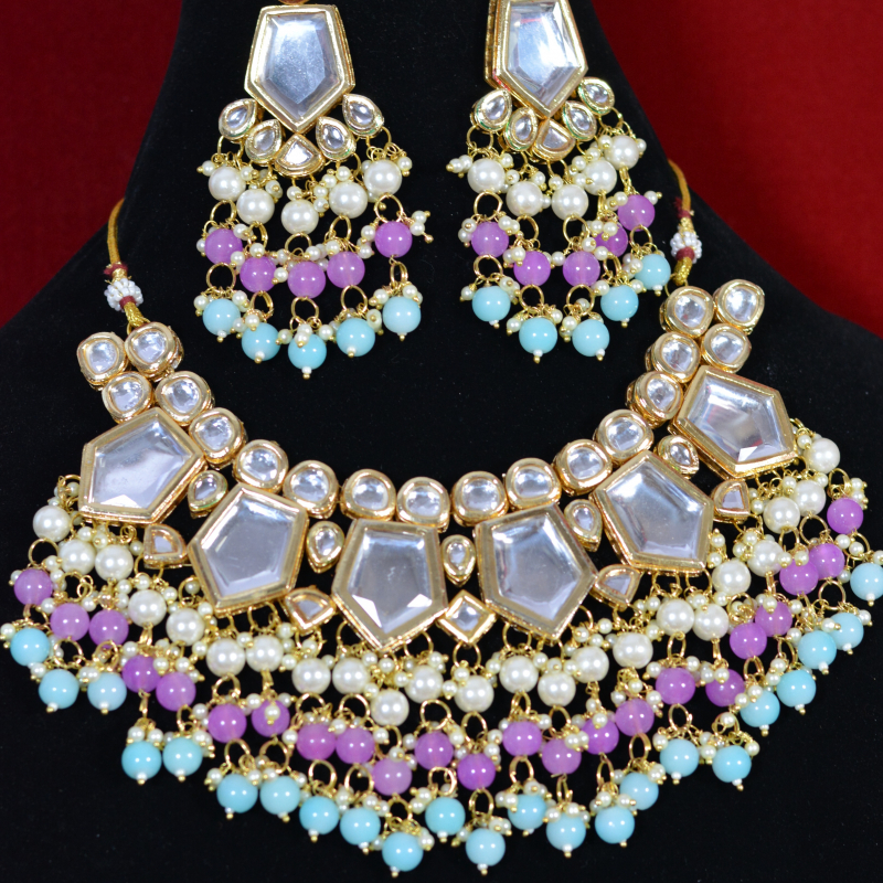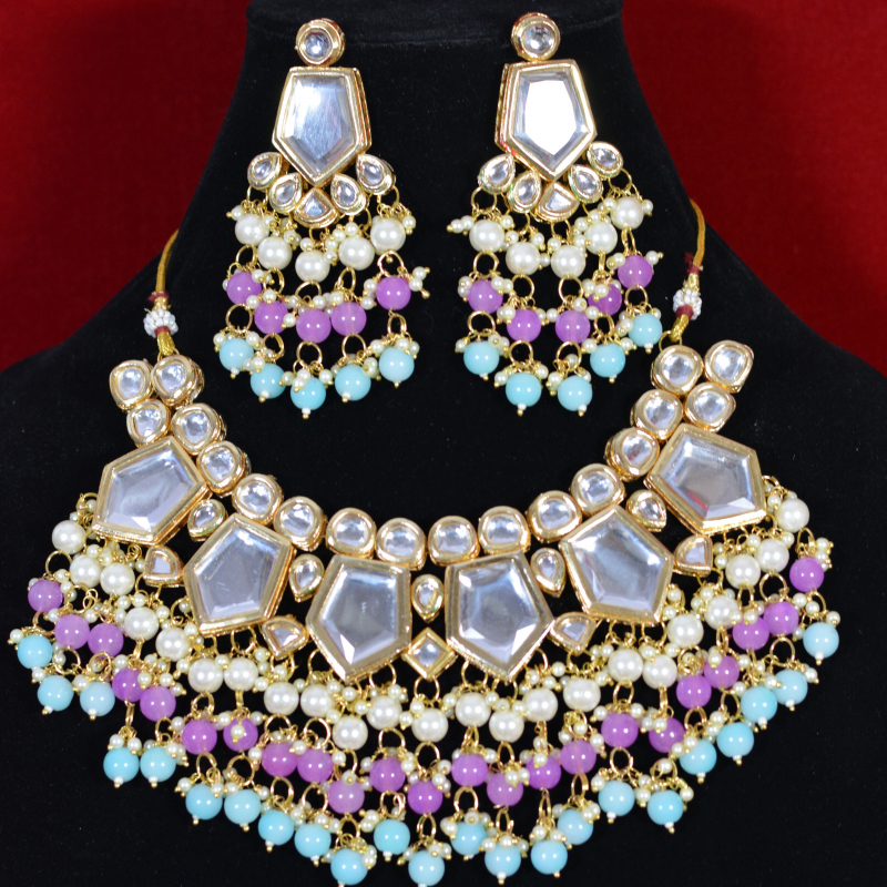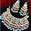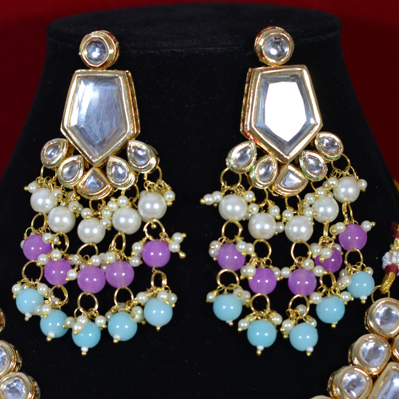 Crafted in soft pastel tones, this royal Kundan festive set blends traditional artistry with contemporary color appeal. The delicate stonework and balanced design create a refined, premium look suited for festive celebrations and elegant daytime events. Lightweight and graceful, it offers standout style with excellent wearability and affordability.