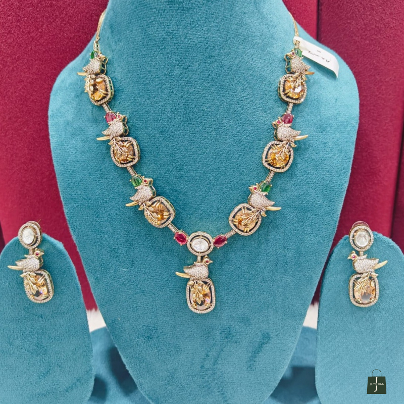 Royal Peacock Motif Designer Necklace Set with Stone Drop