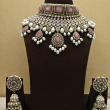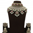 Make a grand statement with this Royal Pearl & Pink Kundan Bridal Choker Set, designed to reflect timeless elegance and regal craftsmanship. This stunning choker features square-cut pink stones on the top layer, followed by multiple rows of sparkling Kundan stones beautifully arranged in a cascading pattern.