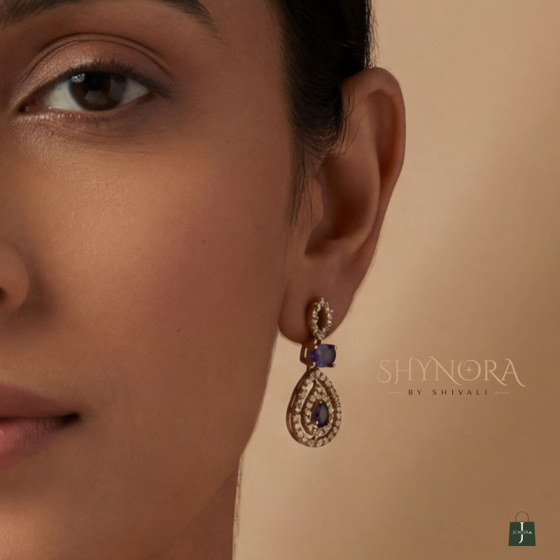The Royal Purple Double Layer AD Necklace Set with Teardrop Pendant is a statement piece designed for elegance and grandeur. This beautiful set features a double-layer necklace crafted with rich purple stones paired with a sparkling American Diamond (AD) finish. The layered design adds depth and luxury, while the delicate teardrop pendant at the center completes the look with grace.