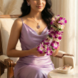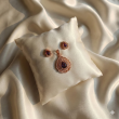 Captivate the room with this majestic pendant and earring set from Ammaira Jewelz. Centered around a deep purple, pear-shaped stone, this design is framed by an intricate rose gold halo with delicate filigree detailing. The vintage-inspired aesthetic and rich color make this set a stunning choice for weddings, receptions, or elegant evening parties.