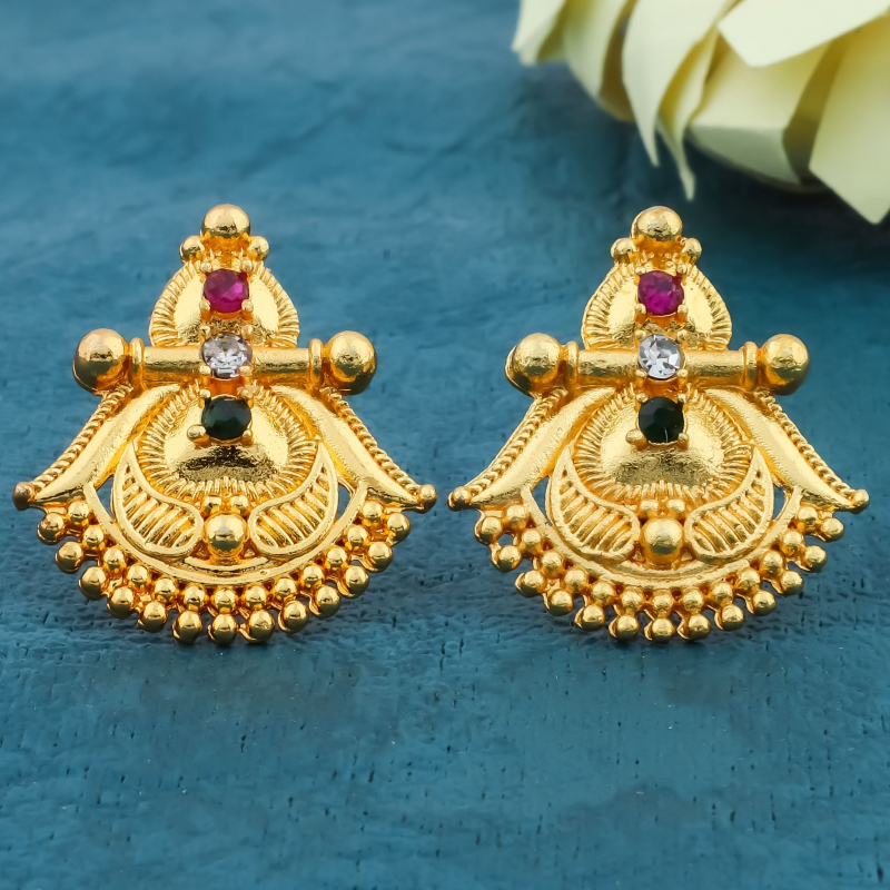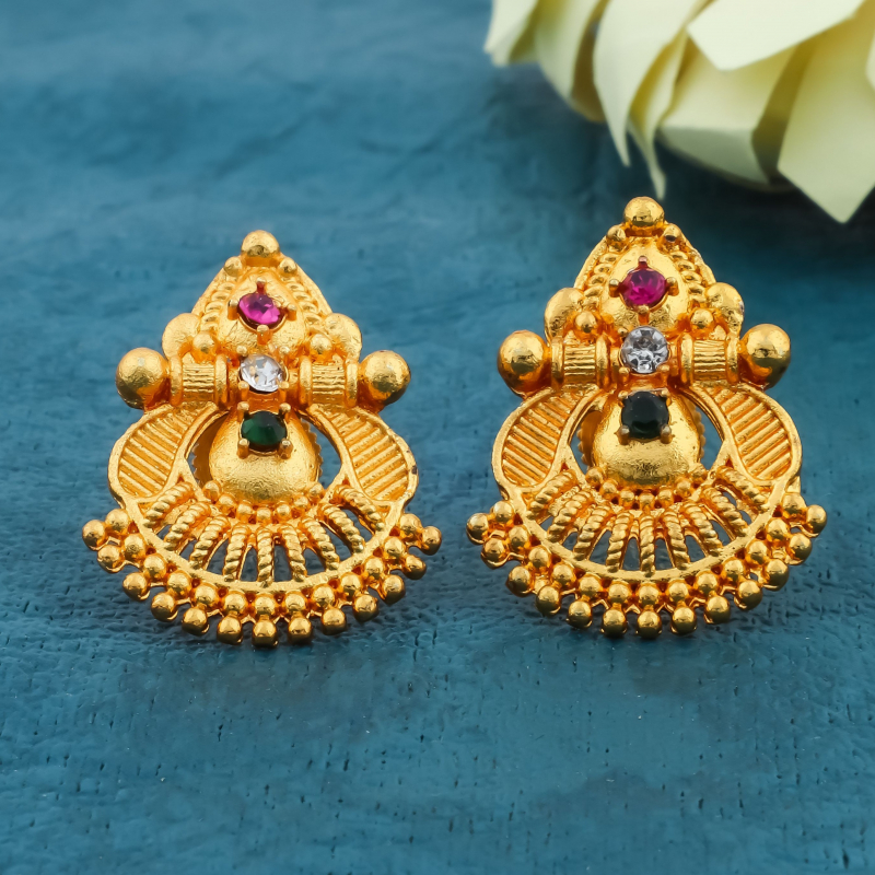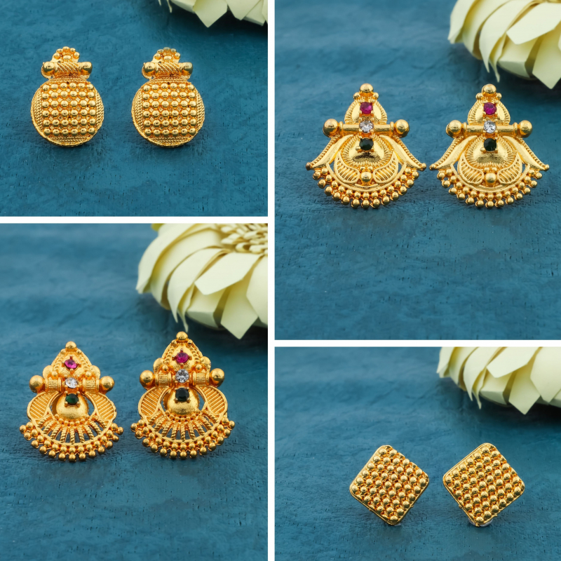 Add timeless elegance to your jewellery collection with this Royal Traditional Earrings Combo Set. This beautiful set of 4 pairs includes classic gold-plated stud earrings and intricate chandbali designs crafted with detailed beadwork and multicolor stones like ruby pink, green and white crystals. The antique gold finish enhances the traditional appeal, making them perfect for weddings, festivals, parties and everyday ethnic styling. Designed with a secure push-back closure, these lightweight earrings offer both comfort and style.