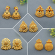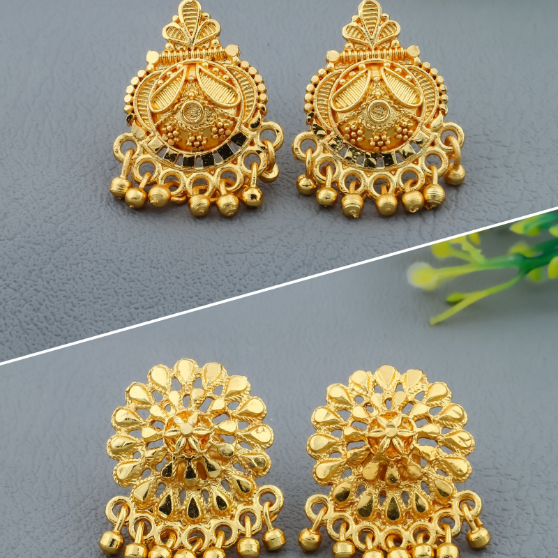 This elegant ethnic gold earrings combo pack includes 5 beautifully crafted pairs that combine traditional artistry with modern design. Each earring showcases intricate patterns such as floral shapes, radiant sunburst designs, and detailed bead textures that create a sophisticated look. The rich gold polish enhances the overall shine and adds a regal charm to the jewelry. Designed with comfort in mind, the earrings are lightweight and feature secure push-back closures for easy wear. The sparkling stones add a graceful accent that complements both ethnic and contemporary outfits. Perfect for weddings, festive celebrations, parties, or everyday styling, this combo set offers a stylish variety of earrings to suit every occasion.