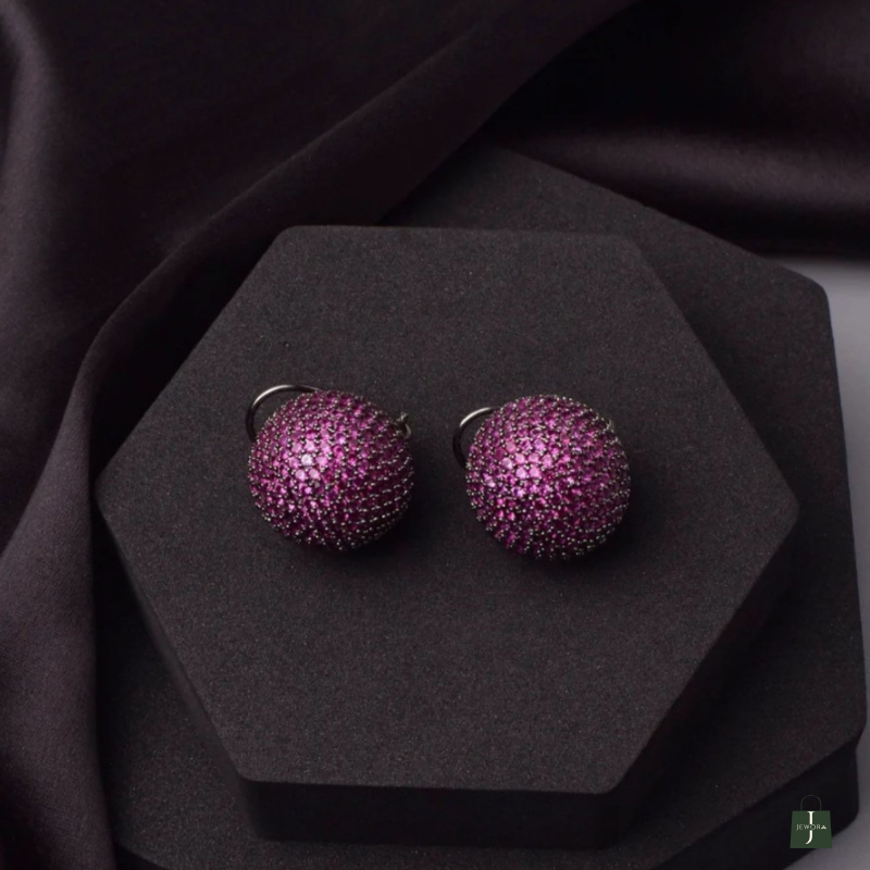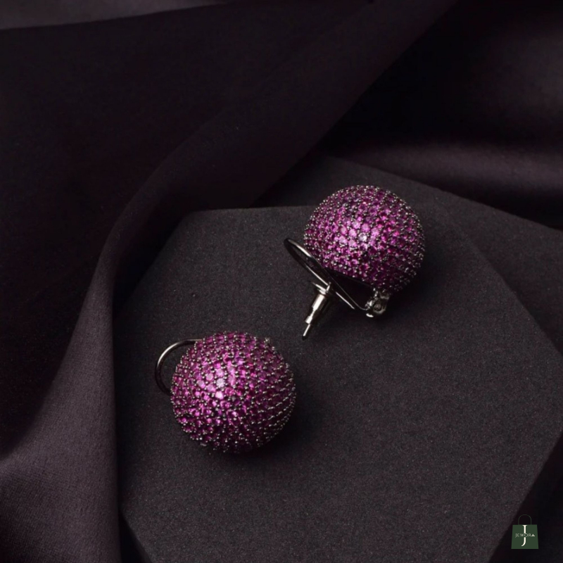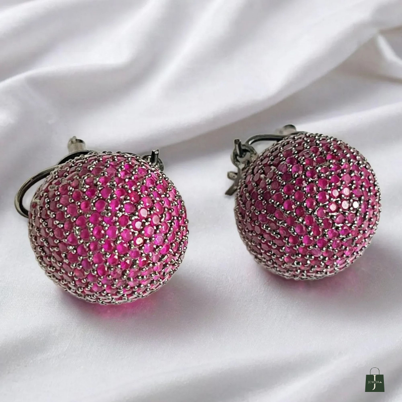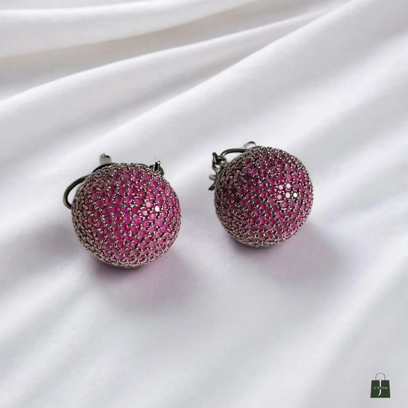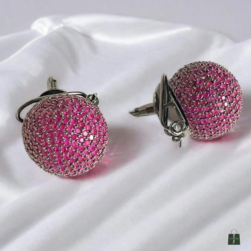 RUBY AMERICAN DIAMOND BALL STUD EARRINGS