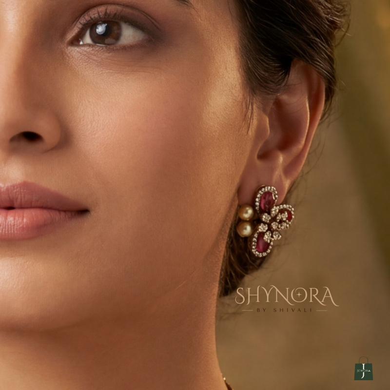 Ruby-toned bead drops with floral motifs