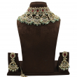 The detailed craftsmanship, layered structure, and elegant pearl-bead hangings enhance its traditional charm. This complete bridal set includes matching chandbali earrings and a coordinated maang tikka, making it perfect for weddings, receptions, and grand festive occasions.