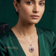 The matching circular stud earrings mirror the pendant’s graceful symmetry, making this set a perfect choice for weddings, festive celebrations, and evening occasions.
