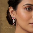 The Ruby Red Blossom Drop AD Necklace Set is a perfect blend of elegance and charm. Designed with radiant ruby red stones encircled by sparkling American Diamonds, this necklace features delicate floral star motifs that add a graceful, feminine touch.
