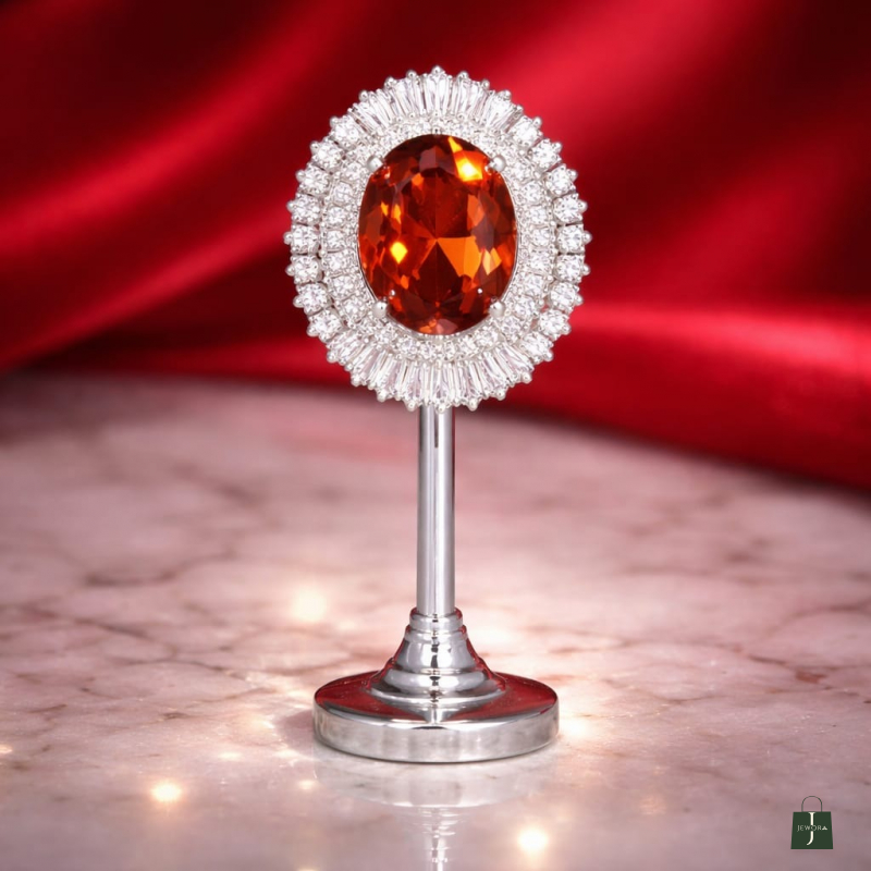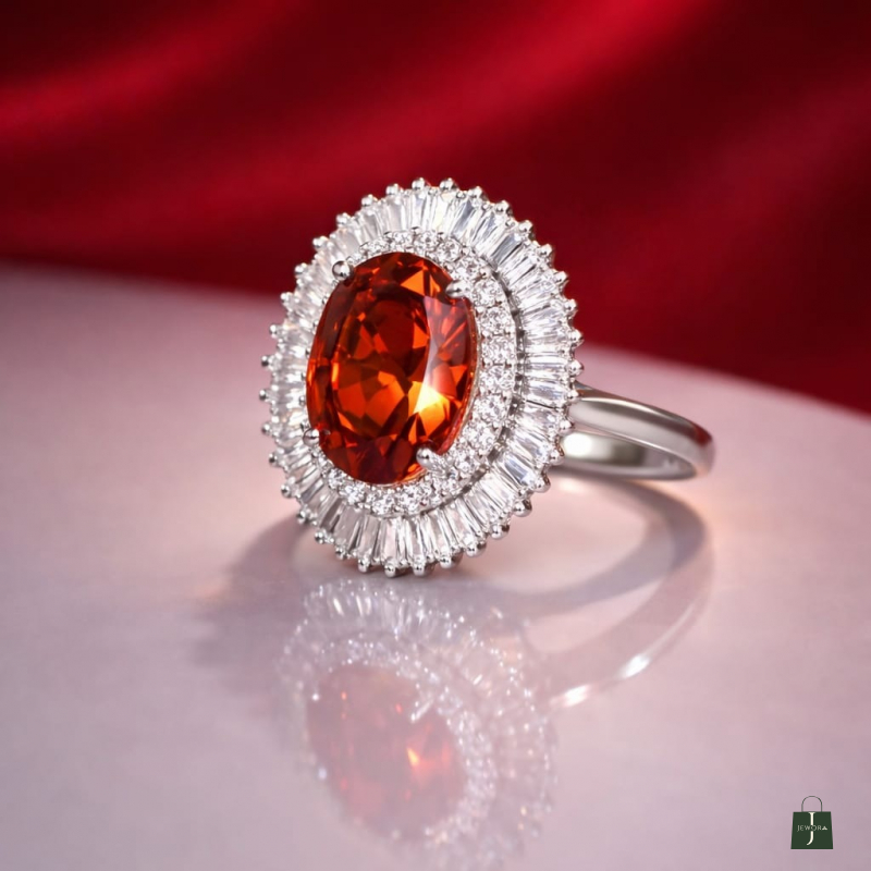 Featuring a dazzling oval centerpiece surrounded by baguette and round-cut zircon halo, this elegant silver polish ring adds timeless glamour to every look. Perfect for weddings, parties, festive wear, and special occasions.