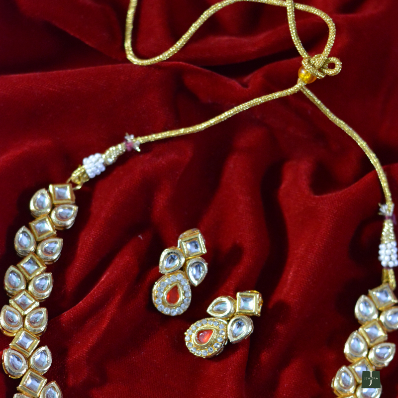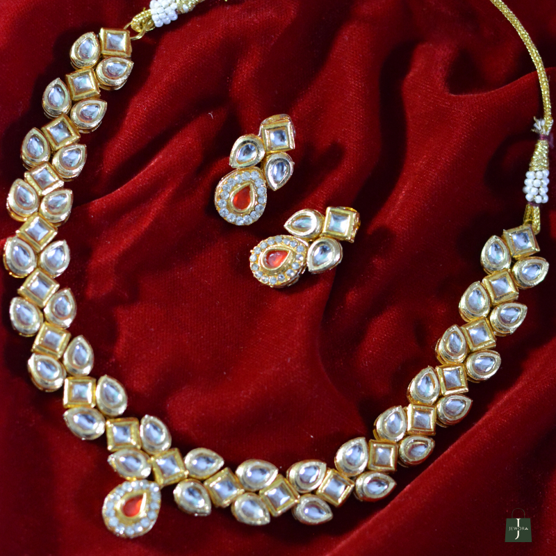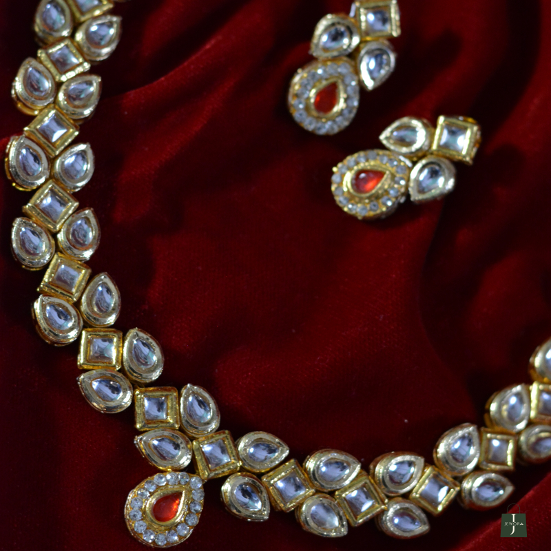 Elegant and understated, this ruby teardrop Polki minimal necklace set highlights clean lines and subtle sparkle. The refined Polki stones paired with a graceful teardrop accent create a luxurious yet lightweight design, perfect for intimate functions, festive evenings, and contemporary ethnic styling.