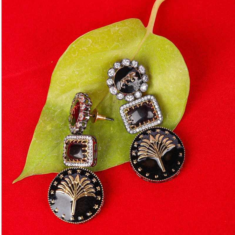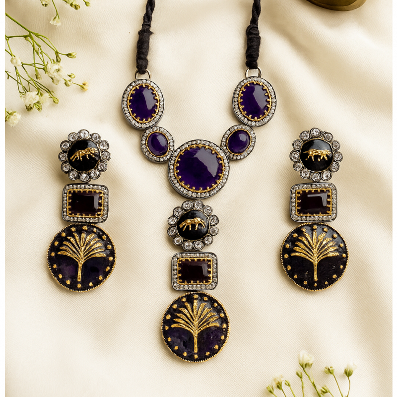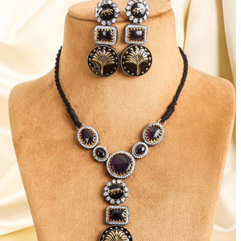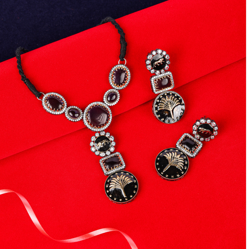 This stunning Sabhysachi necklace is a true statement piece that will add a touch of vintage charm to any outfit. The necklace features a beautiful oxidized finish that gives it a unique and distinct look, and is crafted from high-quality materials to ensure lasting durability and beauty.