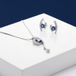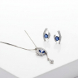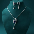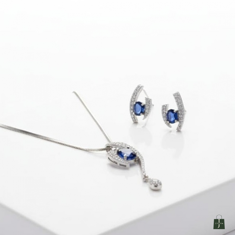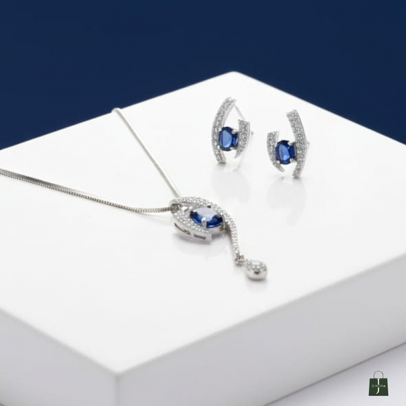 Add a touch of contemporary charm to your jewelry collection with this stunning Sapphire Curve Elegance Pendant Set. Designed with a sleek white finish and highlighted by a deep royal blue sapphire-toned centerpiece, this set beautifully blends modern minimalism with timeless sparkle. The flowing curved design adorned with shimmering stones makes it perfect for both evening occasions and stylish celebrations.