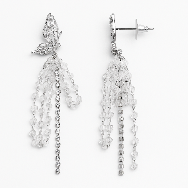 Silver Butterfly Drop Earrings