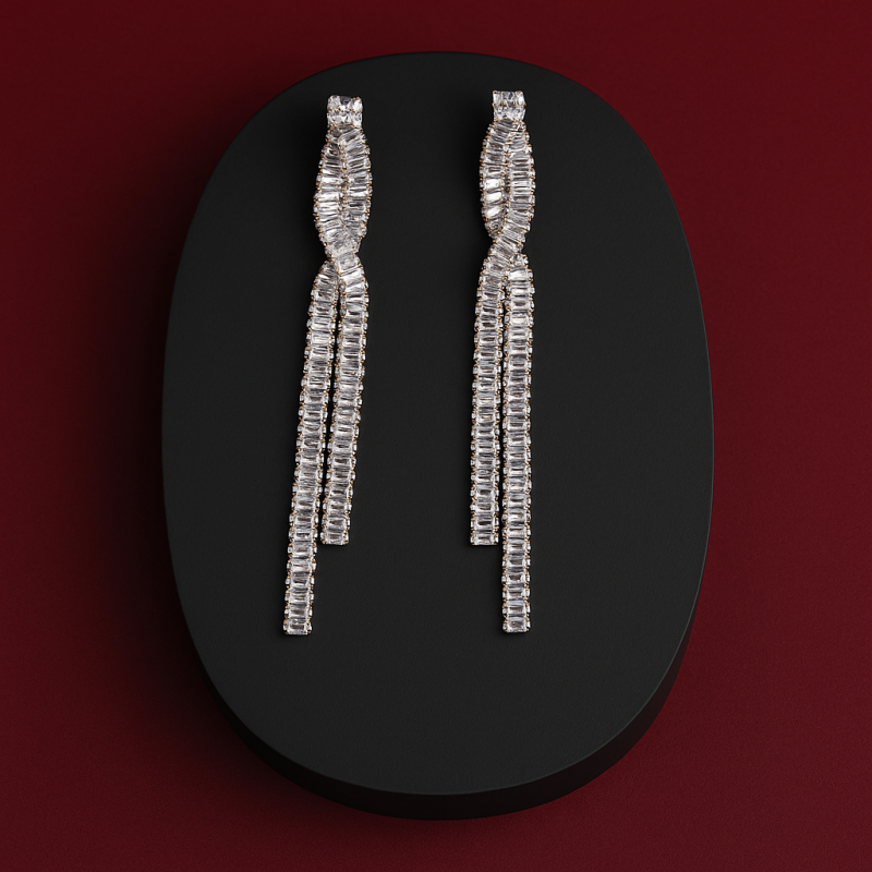 Add a touch of sophistication to your collection with these Silver Crystal Drop Earrings. Designed with cascading American Diamond (CZ) stones, these earrings shimmer beautifully with every movement, making them the perfect choice for parties, festive celebrations, and elegant evening outings. The silver plating enhances the sparkling brilliance, giving them a refined and luxurious finish.