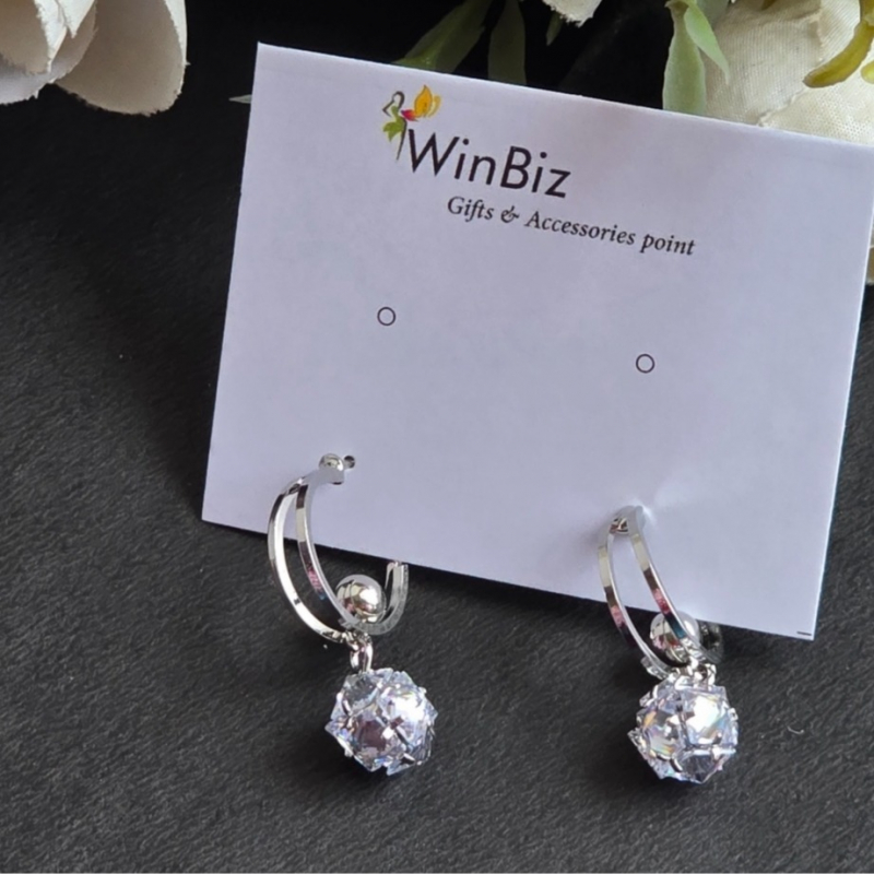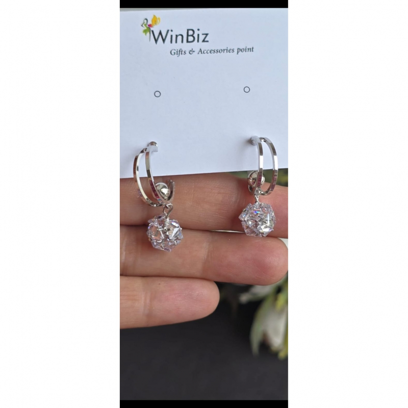 Add a touch of sparkle to your look with these silver finish hoop earrings, featuring a dazzling crystal drop that catches the light beautifully. The sleek hoop design paired with the hanging crystal gives a modern yet elegant vibe, making them perfect for daily wear, parties, and special occasions. Lightweight and comfortable, these earrings effortlessly complement both western and fusion outfits.