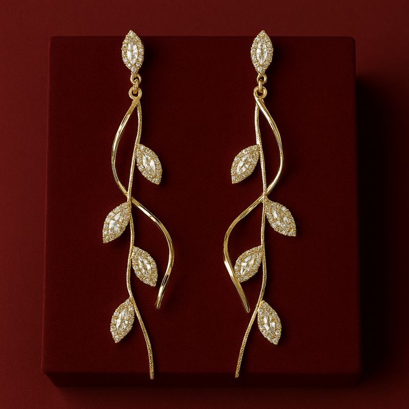 Embrace the elegance of nature with the Silver Leaf Vine Earrings, crafted with a delicate vine design adorned with sparkling American Diamond (CZ) stones. These earrings capture the beauty of cascading leaves, making them a perfect accessory for parties, festive gatherings, and elegant evenings.