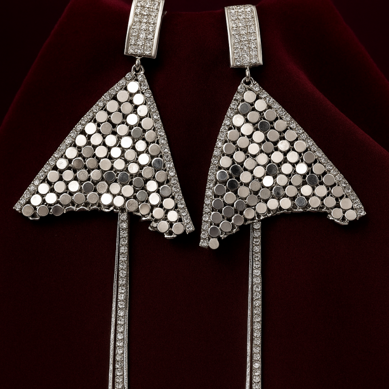 Made from premium alloy and finished with a radiant silver polish, the earrings are lightweight yet durable, ensuring comfort for all-day wear. Their graceful drop silhouette enhances the neckline and complements both western and ethnic outfits beautifully.