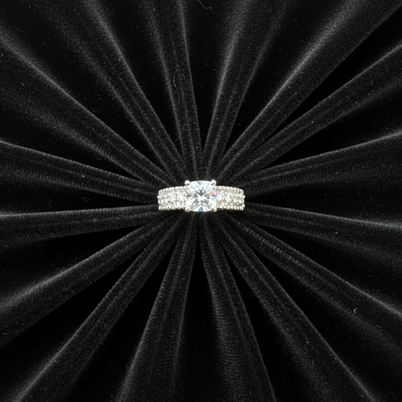Silver Solitaire AD Ring is a classy and versatile design crafted with a sparkling American Diamond (CZ) solitaire at the center, paired with a dual-layered stone-studded band. The band’s intricate detailing ensures maximum shine, giving this piece a premium and sophisticated look. This ring is perfect for engagements, parties, and everyday elegance. The brilliant CZ stone mimics the fire and clarity of real diamonds, while the silver-polished base adds a modern, timeless charm. Lightweight and comfortable, it blends beautifully with both traditional and western outfits, making it a must-have addition to any woman’s jewellery collection.
