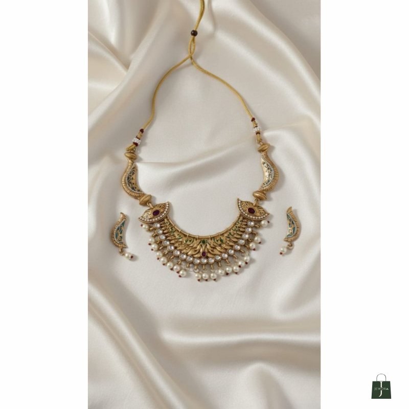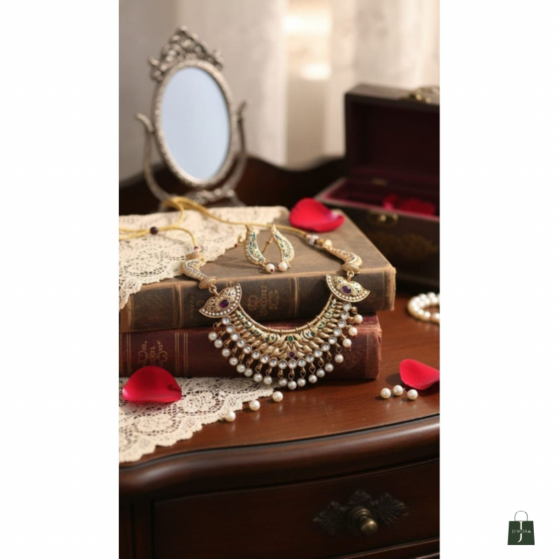 Exquisite Craftsmanship: Each set features intricate gold-plated filigree, traditional Meenakari (enamel) work, and high-quality synthetic stones/beads, designed to mimic high-end heritage jewelry. Adjustable Fit: The necklaces come with a comfortable and adjustable thread (Sarakta Dori), allowing you to customize the length to fit perfectly as a tight choker or a slightly lower necklace.