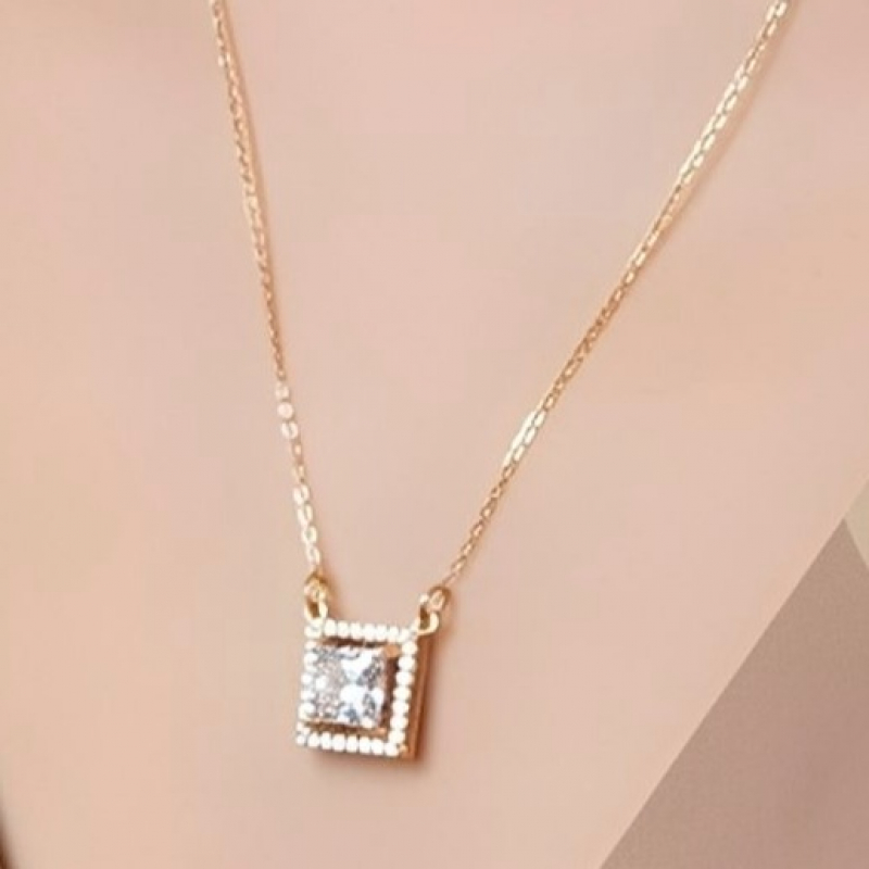 Elegant CZ square pendant necklace with beautiful rose gold polish and sparkling stones. Delicate and stylish design, perfect for daily wear and special occasions.