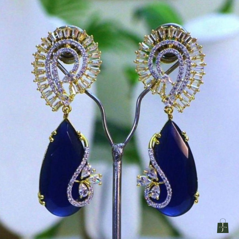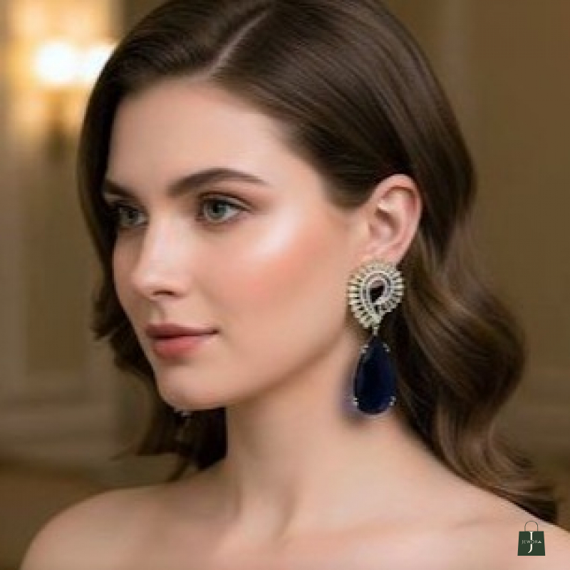 These earrings are a masterclass in Art Deco-inspired opulence, blending architectural precision with a deep, moody color palette. They are designed to be "show-stoppers" that frame the face with light and movement.