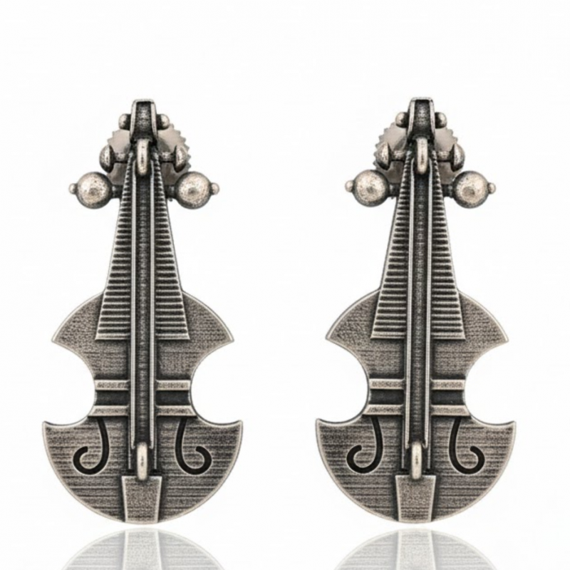 Celebrate your love for music and tradition with these beautifully crafted oxidised silver-plated violin earrings. Designed with intricate detailing that resembles the curves and strings of a classical violin, these earrings bring together art, culture, and craftsmanship in a single piece. The antique finish enhances the ethnic charm, while the tiny silver beads add a touch of elegance and movement.