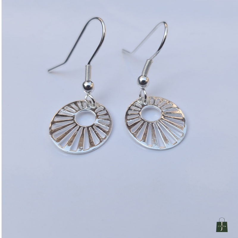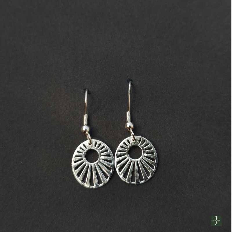 Minimal yet striking earrings with a circular sunburst cut-out design. Lightweight and stylish, perfect for everyday elegance. Pairs effortlessly with casual and semi-formal outfits.