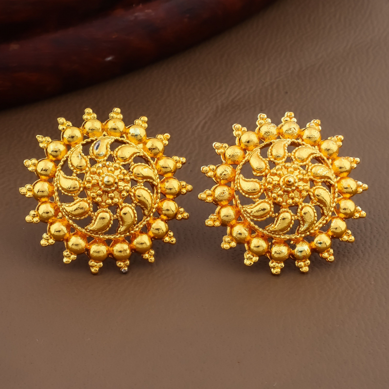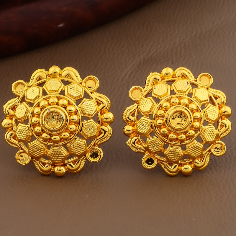 Enhance your jewellery collection with this elegant 2-pair traditional stud earrings combo featuring beautifully detailed sunburst and mandala-inspired circular motifs. Crafted with intricate patterns and finished in a rich antique gold polish, these earrings offer a timeless ethnic appeal. Their lightweight yet bold design makes them perfect for pairing with sarees, kurtis, and festive outfits. Ideal for both everyday ethnic styling and special occasions, this combo adds classic charm to any look.