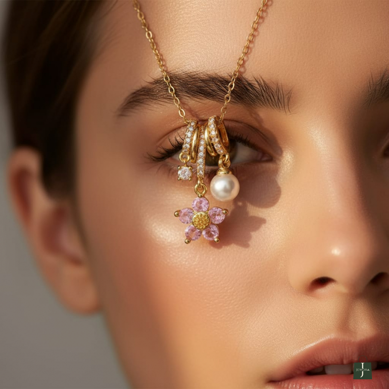 Elevate your everyday style with the The Blushing Bloom Trio, a stunning convergence of nature-inspired beauty and timeless elegance. Designed for the modern woman who loves a touch of whimsy, this necklace features a curated cluster of charms that dance with every movement.
