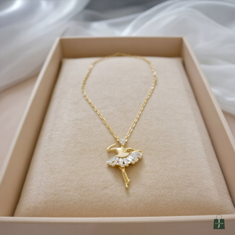 This exquisite piece is a celebration of grace and elegance, featuring a charming ballerina pendant that captures the artistry of dance.