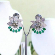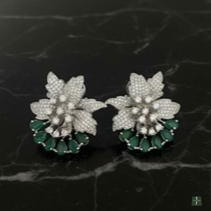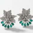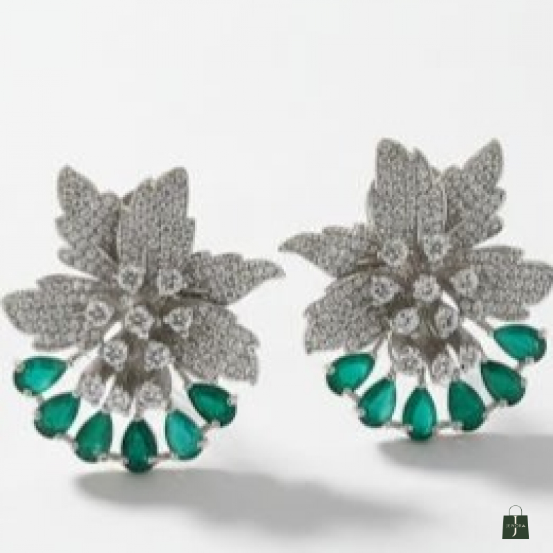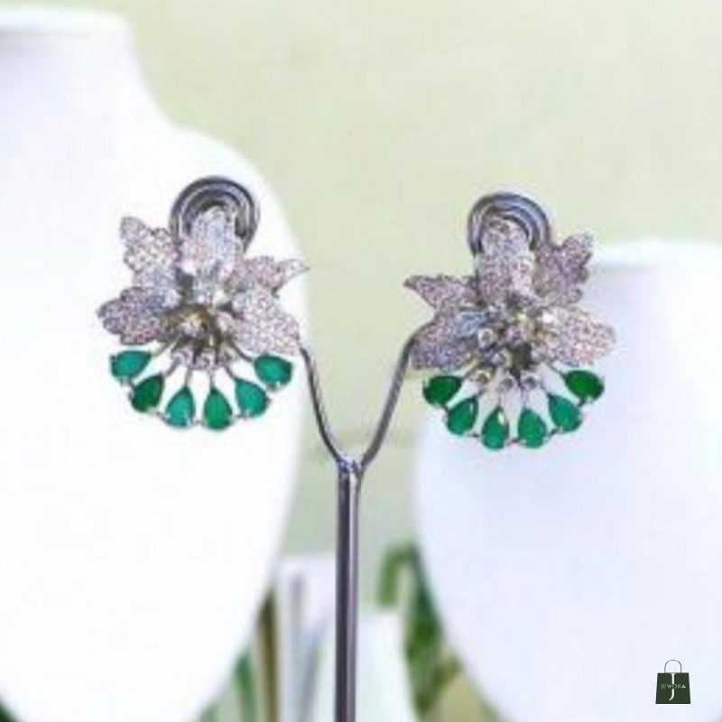 Exude timeless sophistication with these striking botanical statement earrings. Featuring a brilliant architectural floral bloom encrusted with shimmering pavé stones, this pair is anchored by a regal fringe of pear-cut emerald-toned gems. Designed to catch the light from every angle, they offer the perfect blend of vintage royalty and modern glamour."