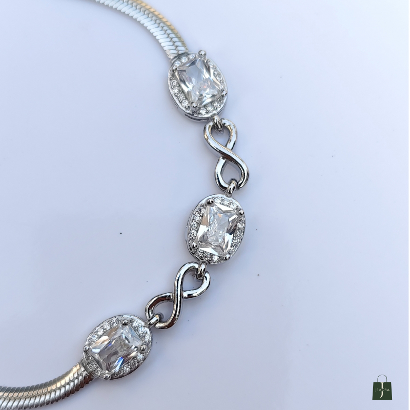Where elegance meets infinity, this bracelet captures timeless beauty with its radiant stones and infinity links. Each crystal shines like a promise that never fades. A symbol of everlasting charm and sophistication
