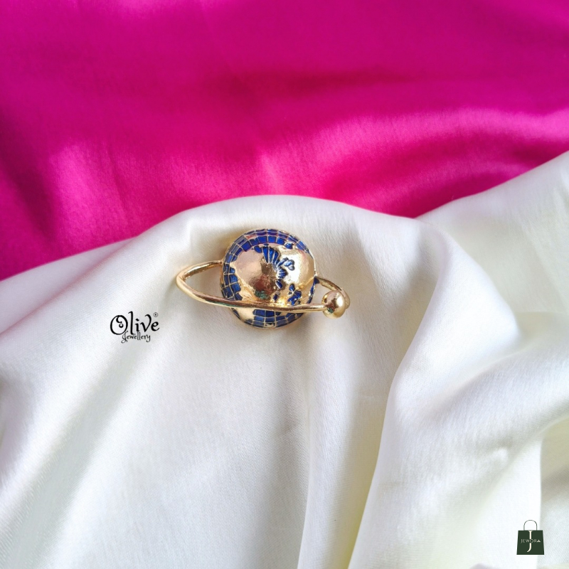 Step into a cosmic-inspired style with the Celestial Orbit Enamel Ring. This unique statement ring features a spherical planet design highlighted with deep blue enamel detailing and a glossy gold-tone orbit band wrapping around it. The modern celestial theme makes it a standout accessory for fashion lovers who enjoy bold yet elegant jewellery. Lightweight and adjustable, this ring is perfect for daily wear, parties, or gifting