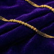 This masterpiece features a majestic, circular gold pendant adorned with intricate filigree and concentric patterns, echoing timeless temple jewelry aesthetics. Delicate ruby-red accents and vibrant emerald-colored droplets add a touch of royal grandeur.