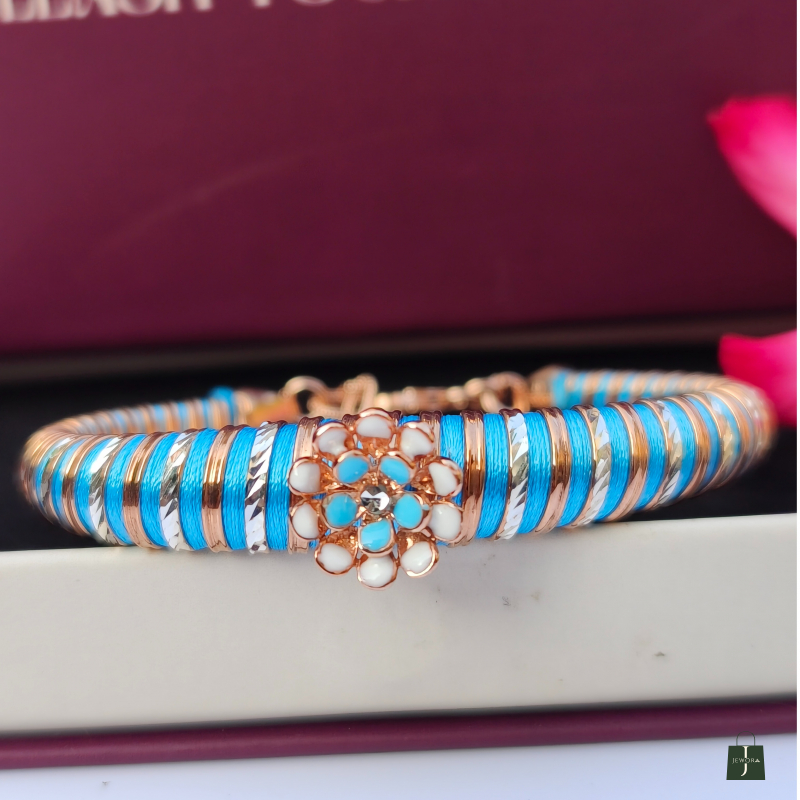 Style: Blue, rose & silver twisted design with floral charm