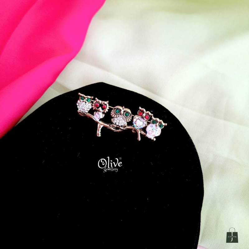 Add a playful yet elegant charm to your outfit with this beautifully crafted Five Owl Branch Brooch Pin. Featuring five intricately designed owls perched on a delicate branch, this accessory blends sparkle with character. Each owl is adorned with shimmering stones that catch the light effortlessly, making it a perfect statement piece for scarves, dresses, coats, blazers, or bags. Ideal for both casual wear and special occasions, this brooch brings a touch of fun sophistication to any look.