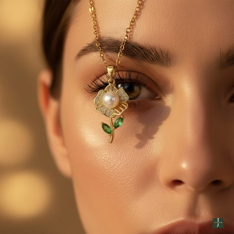 Lustrous Centerpiece: The pendant is shaped like a delicate, budding flower, expertly crafted in a rich gold tone.