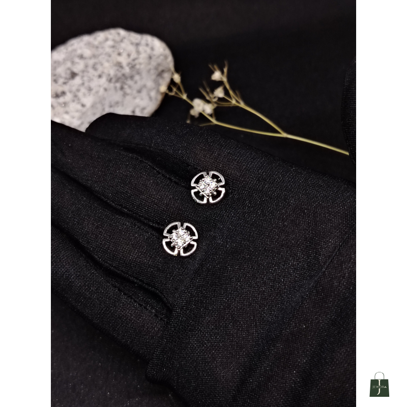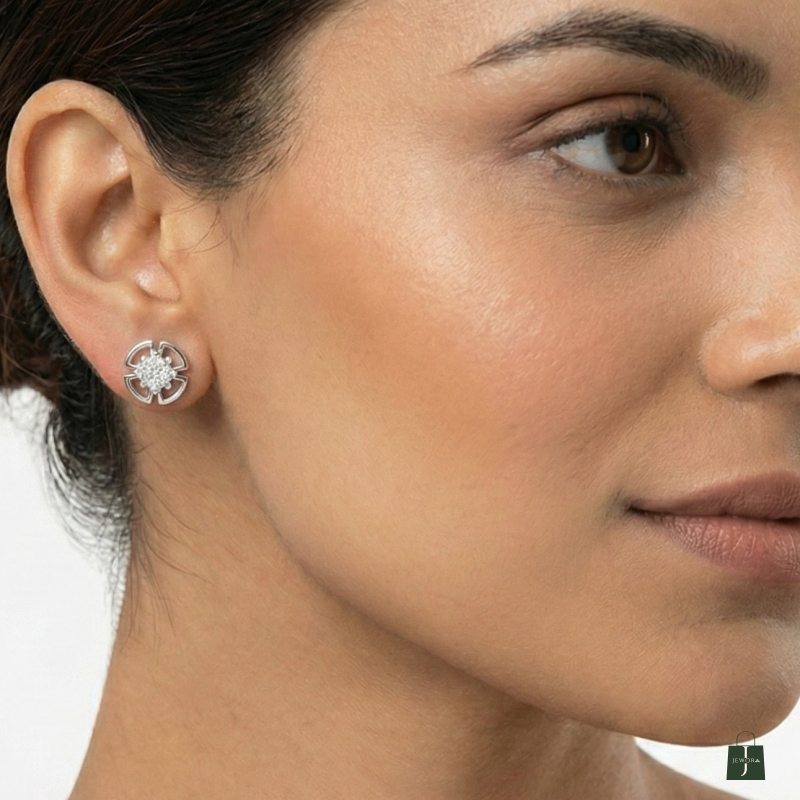 Discover understated elegance with The Quatrefoil Cluster Studs. Each earring is composed of four brilliant round-cut stones meticulously set together in a tight cluster. This arrangement forms a classic quatrefoil shape, giving the illusion of a single, larger, sparkling square-cut stone. Set in polished silver-tone metal with minimal prongs, the design maximizes light reflection, delivering superior brilliance. These studs are a timeless and versatile accessory, perfect for adding concentrated sparkle to your daily look or complementing an evening outfit.