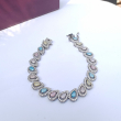 Each gem sparkles like a morning dew kissed by sunlight, a bracelet that embodies pure elegance and timeless grace. With its pastel blue, pink, and yellow teardrops, this piece radiates luxury and charm. A royal touch for your every look.