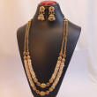 Exude regal charm with this Traditional Layered Pearl Rani Haar Set, a masterpiece of heritage craftsmanship. This majestic long necklace features multiple strands of lustrous pearls accented by ornate gold-plated spacers and ruby-red stones. Complete with matching bell-shaped Jhumka earrings, this exquisite suite is the perfect statement piece for weddings and grand festive celebrations.