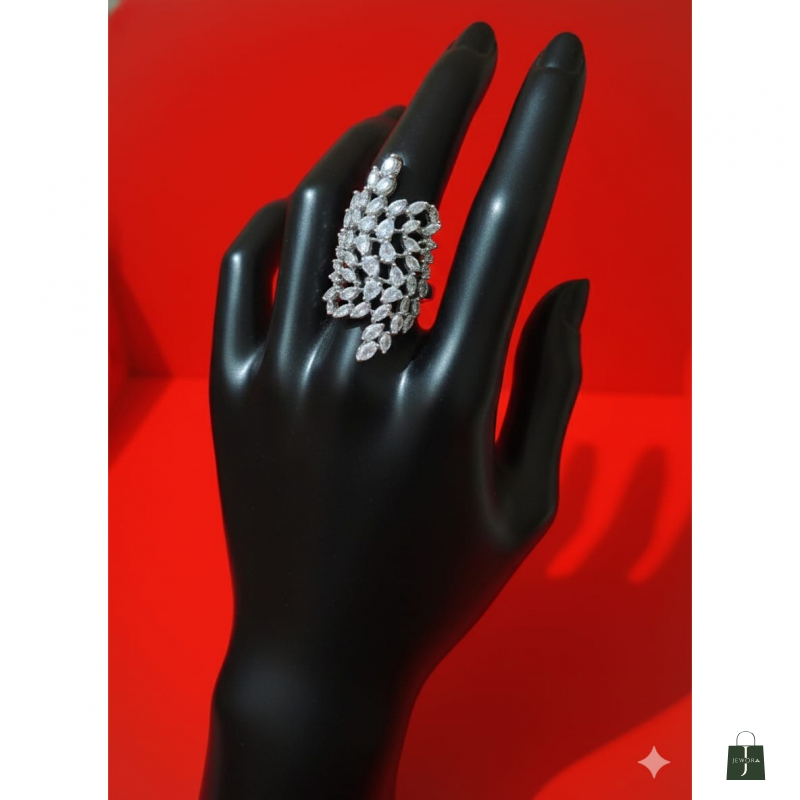 This commanding signet ring is crafted to make a powerful statement. At its core is a vibrant, deep red Simulated Ruby gemstone, cushion-cut and set high to maximize its striking color. The central stone is surrounded by a halo of brilliant Simulated Diamonds/Cubic Zirconia, which perfectly contrast the rich, intricate 22K Gold-Plated (or solid gold, if applicable) setting.