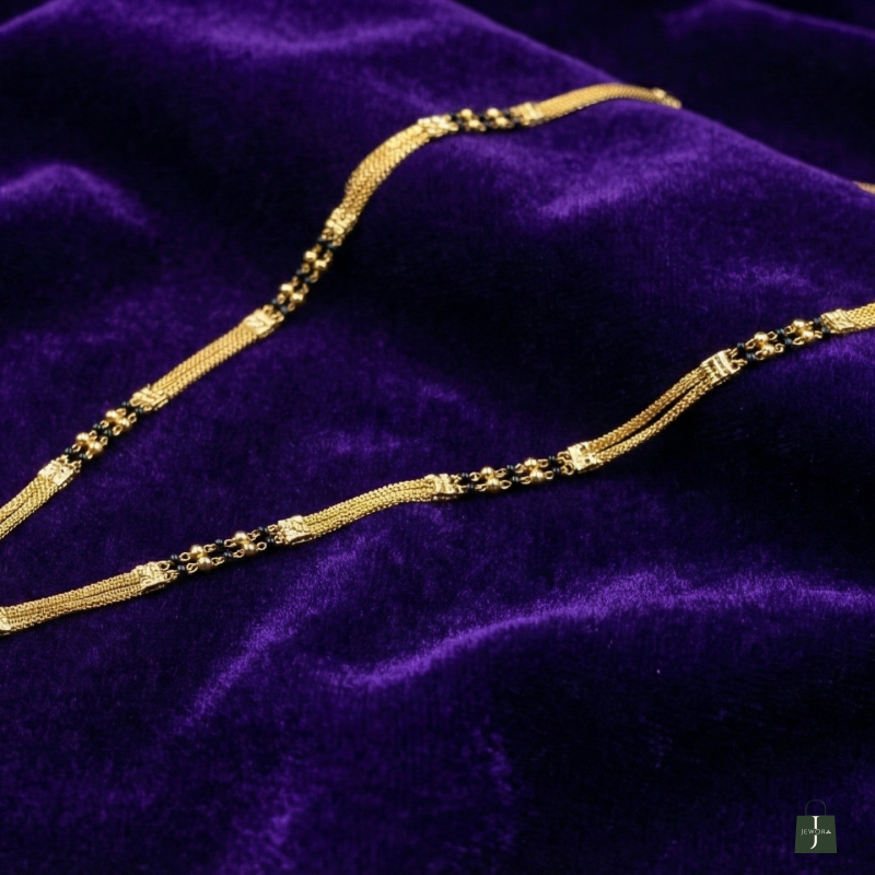 Traditional gold-tone mangalsutra with intricate detailing, perfect for everyday and festive wear.