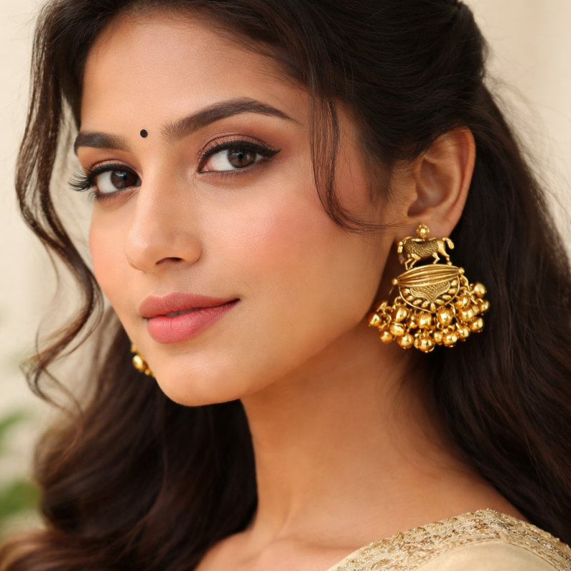 Traditional Gold Plated Ghungroo Jhumka Earrings | Ethnic Statement Jewellery