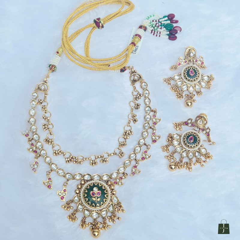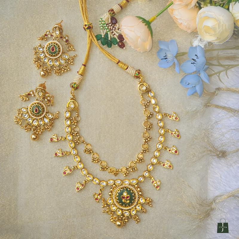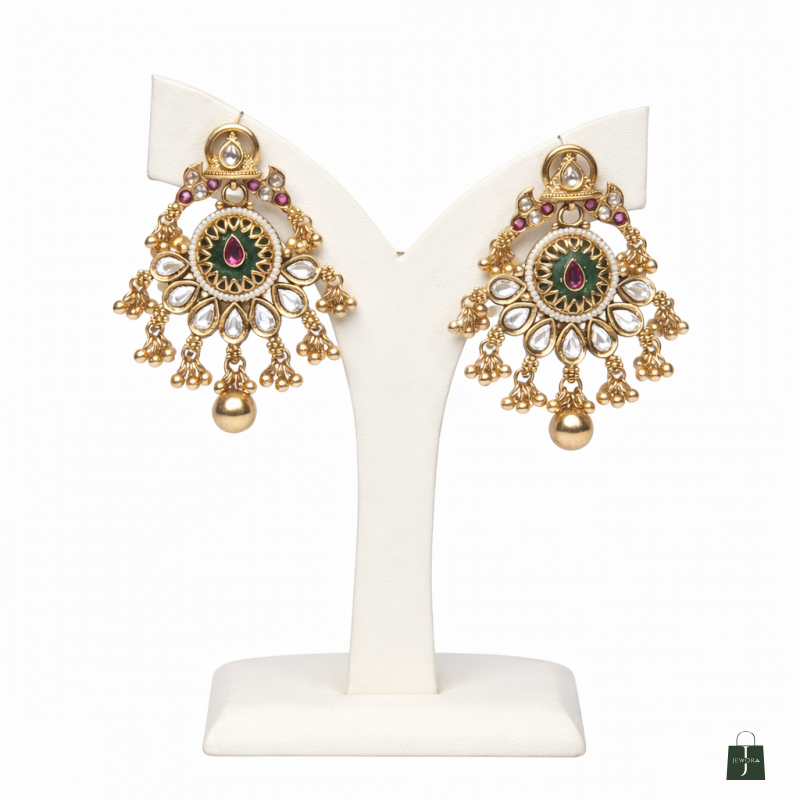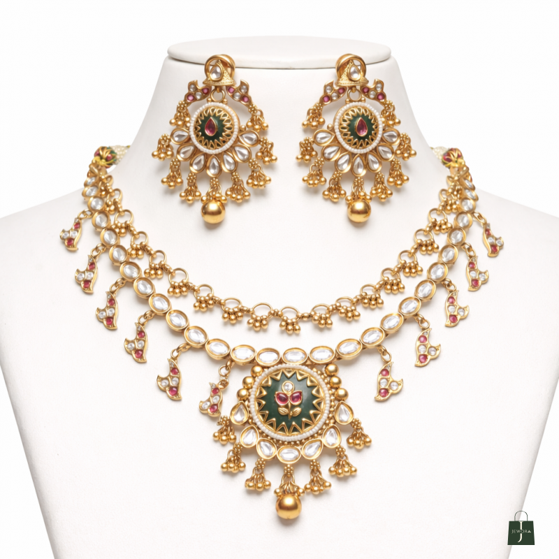 Classic Kundan Temple Design: Inspired by traditional Indian heritage jewelry featuring detailed floral and circular motifs.