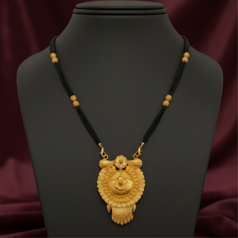 Ideal for everyday wear as well as festive occasions, this mangalsutra combines durability with beauty. The multiple strands not only provide strength but also add a touch of richness to the design. A blend of tradition and craftsmanship, this piece is a must-have in every woman’s trousseau.